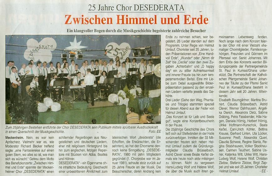 25 Jahre Desederata - Zwischen Himmel und Erde